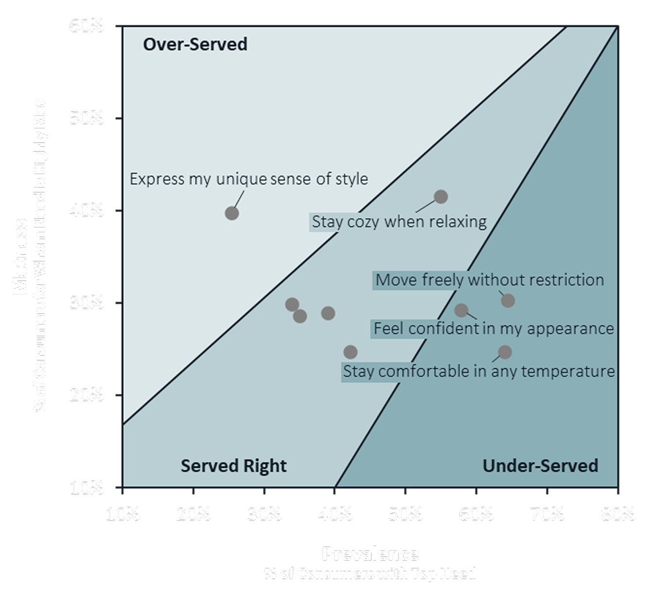 - How well current products meet consumer needs, which functions are under-served, and which are over-served or well met.